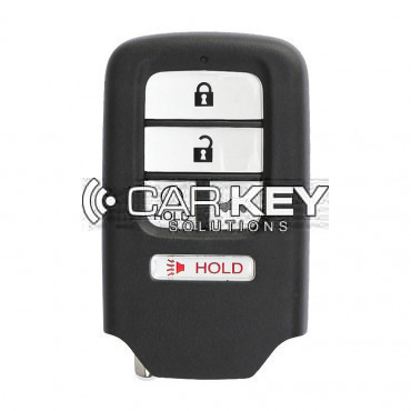 Der Smart-Remote-Schlüssel für den Honda Accord 2016-2017 verfügt über 3 Tasten plus einen Panikknopf und hat eine Frequenz von 433 MHz. Die Teilenummer lautet 72147-T2G-A61 und die FCC-ID ist ACJ932H..